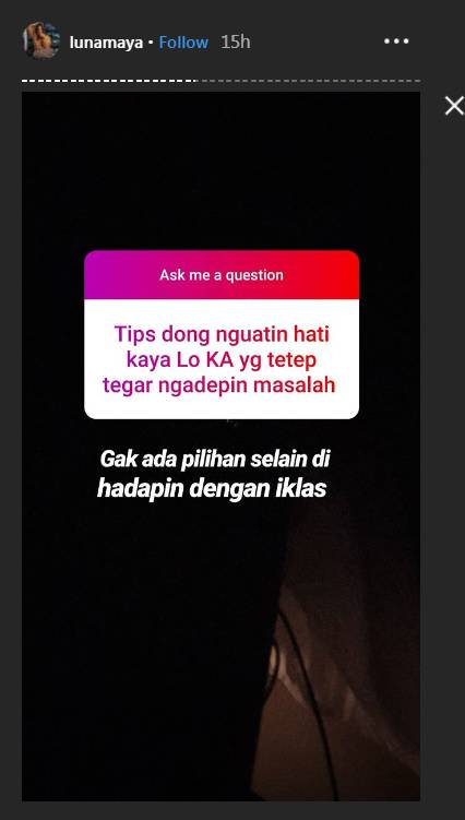 Menurut Luna, tidak ada pilihan lain selain menghadapi masalah secara ikhlas. Dia pun membenarkan tengah menikmati kesendiriannya dan berusaha mencari solusi ketika menghadapi beban.