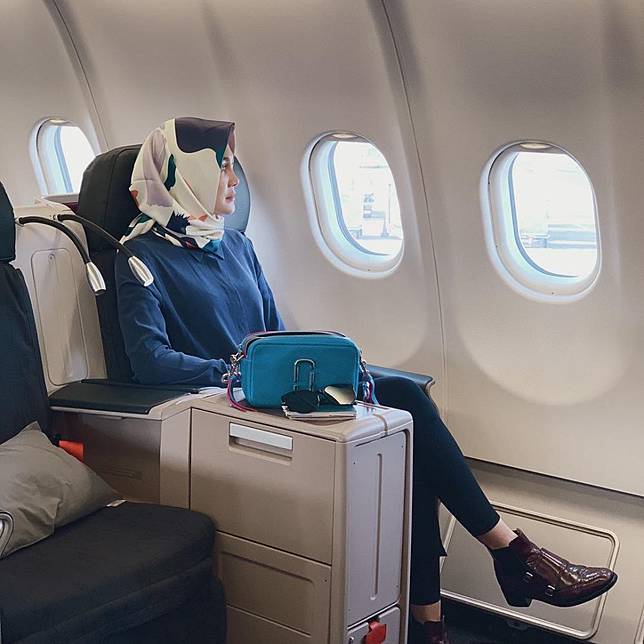 Melalui akun Instagram pribadinya, seleb berusia 34 tahun ini siap mengunggah potret perjalanannya kembali ke Indonesia. Namun ada yang berbeda dengan penampilan Luna Maya saat berada di pesawat. Duduk di dekat jendela, Luna Maya tampil beda dalam balutan hijab berwarna putih bercorak warna-warni.